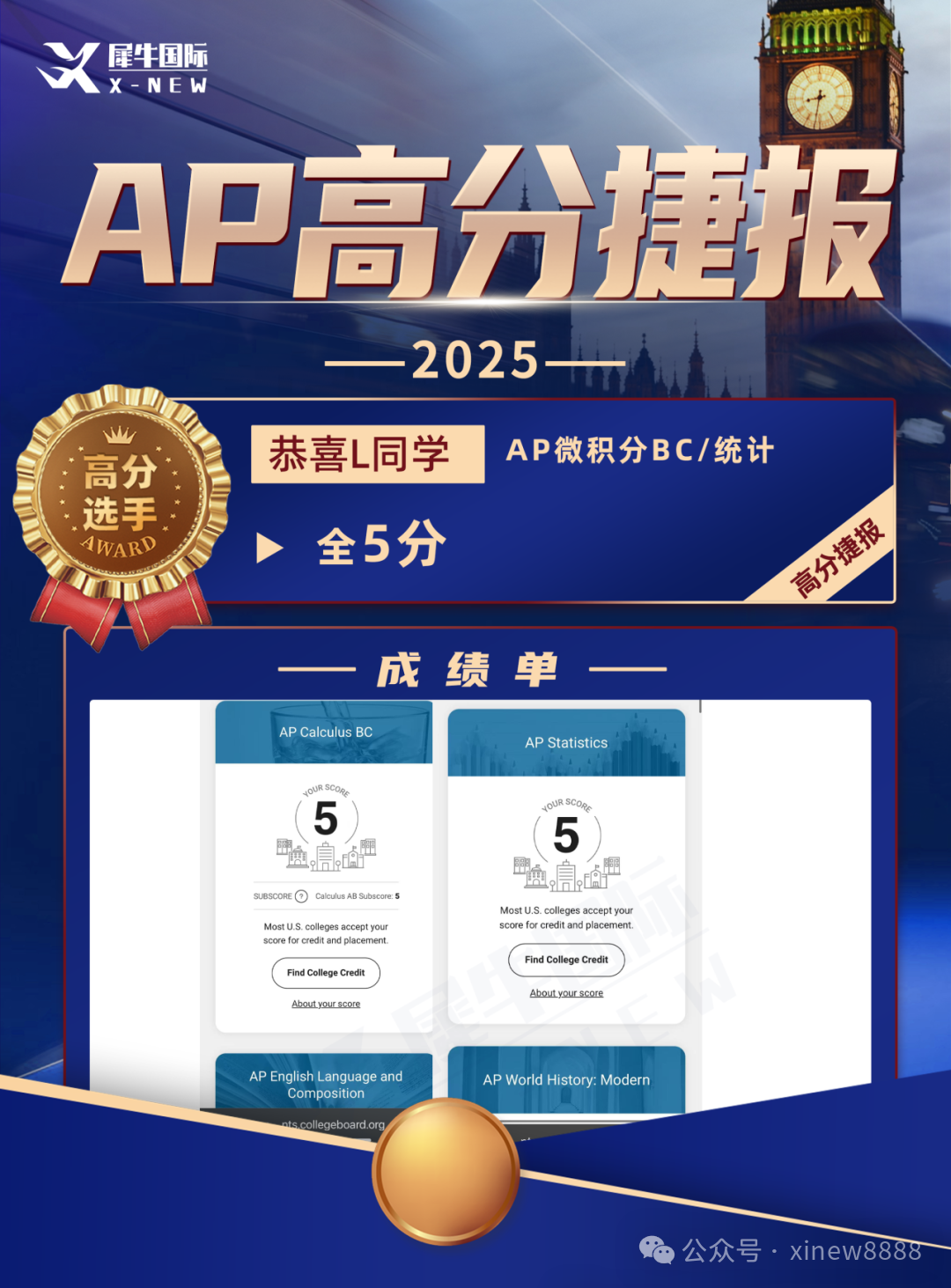 成绩发布:2026年7月初(College Board账号查询)