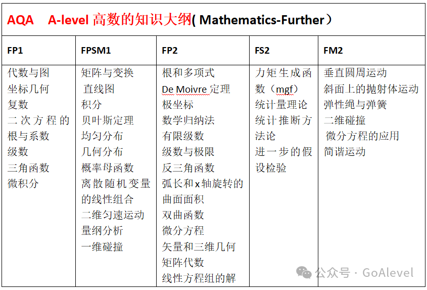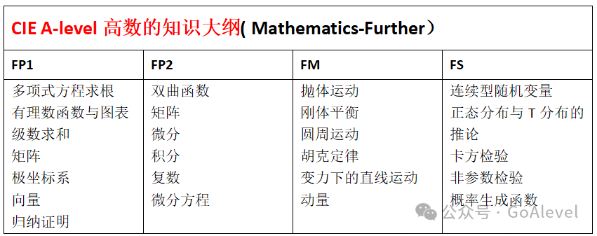 A-level高数包括力学数学(Mechanics)、统计数学(Statistics)、纯数学(Further Pure)、决策数学(Decision Mathematics);决策数学只有爱德思有!